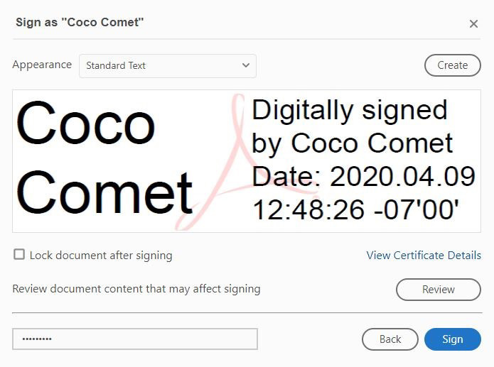 - Enter the Digital ID Password you created earlier and click “Sign”.