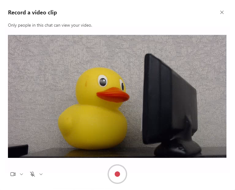 Users can record a video clip to send in Chat for a user to watch. The video is only visible to the chat the message is sent in.