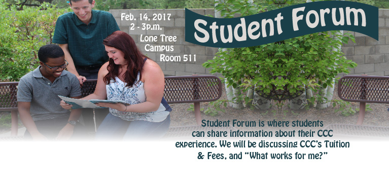 Students will discuss CCC's tuition, Tues., Feb. 14, 2-3 p.m., Lone Tree Campus, Room 511.